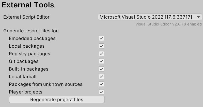 PMDT attempts to locate a generated .csproj file for each Assembly Definition included in the package and an additional Player.csproj file for each assembly if Generate .csproj files for: ... Player projects is enabled in User Preferences. Each matching .csproj file is copied to a temporary directory and listed in the generated DocFX config file metadata section.