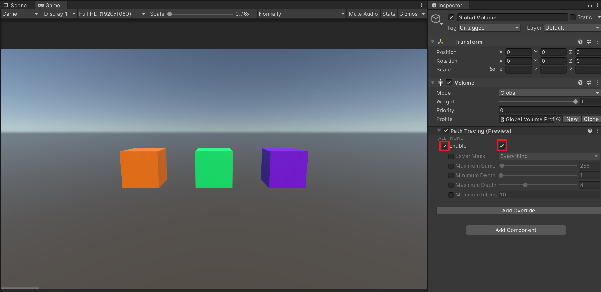 - Setup HDRP to support path tracing by following the Render Pipeline Wizard Setup in this tutorial: