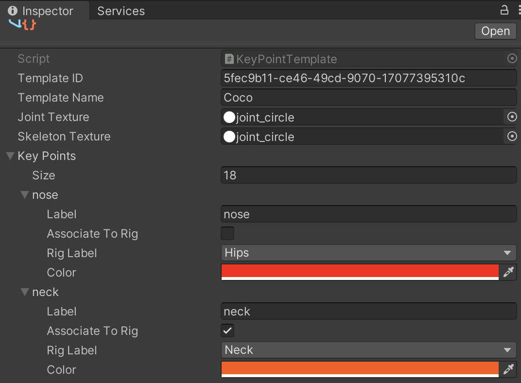 We will now add these joints to our character using labels that are defined in the CocoKeypointTemplate