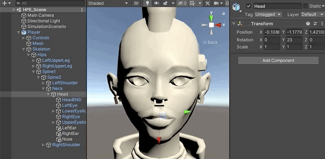 dropdown displays a list of all standard joints available in rigged characters in Unity. In our case the list does not include the nose joint, so the nose