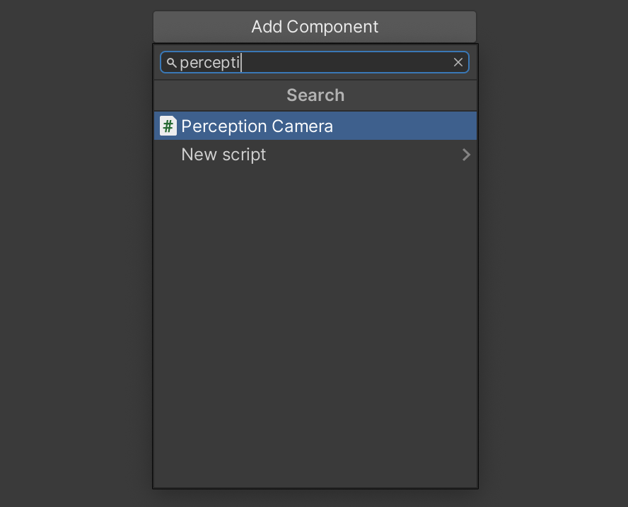 We will now add the necessary components to the camera in order to equip it for the Perception workflow. To do this, we need to add a Perception Camera
