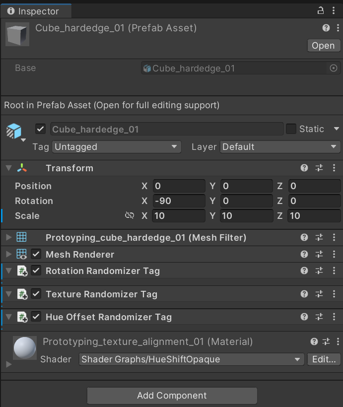 component (you can change this in code!). Therefore, in order to make sure our background Prefabs are affected by the TextureRandomizer