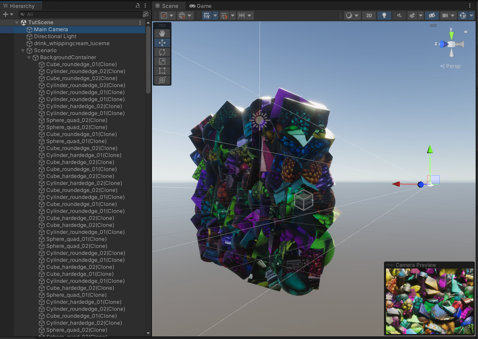 As seen in the image above, what we have now is just a beige-colored wall of shapes. This is because so far, we are only spawning some white shapes, and the warm color of our light is what gives them their this look.