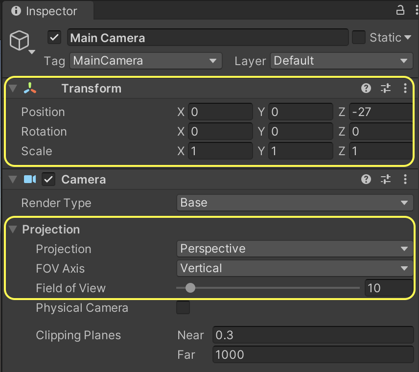 ). We will now modify the camera's field of view and position to prepare it for the tutorial.