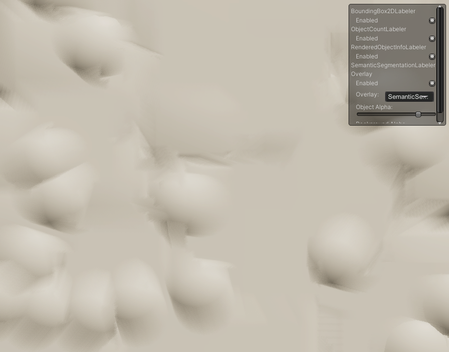 Additionally, the objects in the image are quite blurred. The effect you are observing here is motion blur, which happens because the placement Randomizer we used caches the instantiated objects from one Iteration to the next, and moves them to new locations on each Iteration instead of destroying them and creating new ones. This "motion" of the objects causes the motion blur effect to kick in.