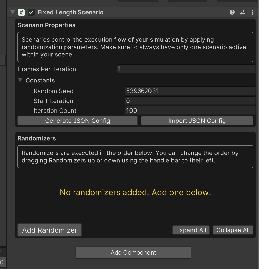 To make sure each Randomizer knows which objects it should work with, we will use an object tagging and querying workflow that the bundled Randomizers already use. Each Randomizer can query the Scene for objects that carry certain types of RandomizerTag