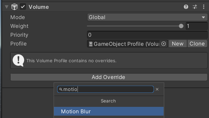 - 🟢 Action: Click Add Override. Search for and select Motion Blur.