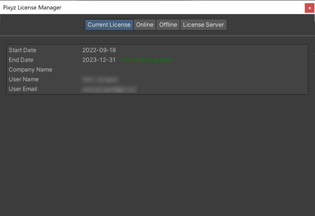 License Manager From the Pixyz menu, choose License Manager. Use the License Manager to access all license-related operations, such as checking, activating, and releasing. Additional resources Activate a license Manage licenses