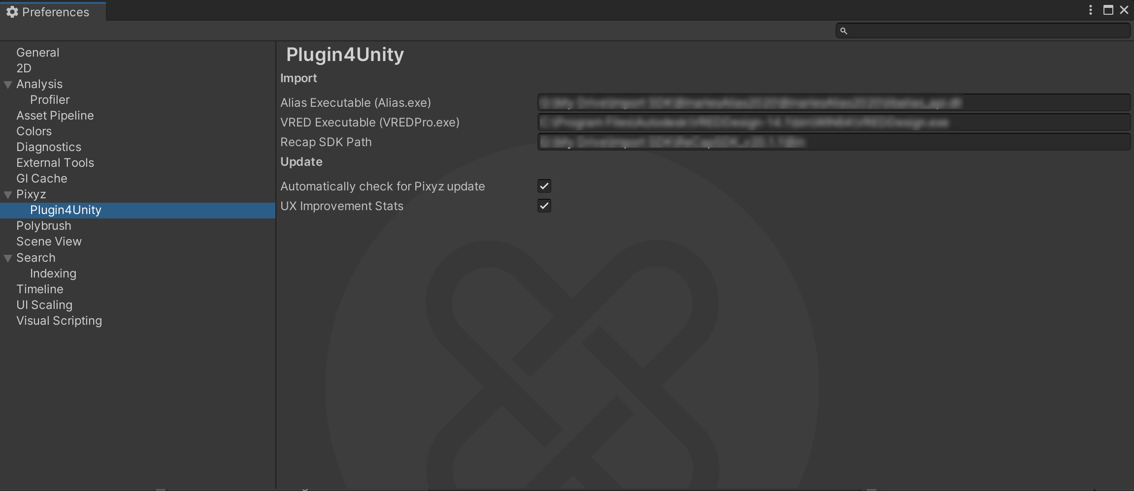 | Automatically check for Pixyz update | Whether to automatically check for a newer version of Pixyz Plugin for Unity |