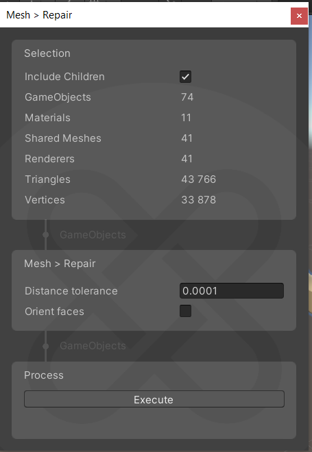 From the Pixyz menu, choose Toolbox > Mesh > Repair.