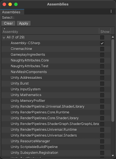 Assemblies window