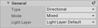 When you click the gear icon, Unity exposes more options for the General section. In this example, the Light Layer property appears: