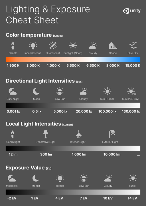 HDRP uses Physical Light Units (PLU) for its lighting. These units are based on real-life light measurements, like those you see on light bulb packaging or a photographic light meter. Note that for lights to behave properly when using PLU, you need to respect HDRP unit convention (1 Unity unit equals 1 meter).