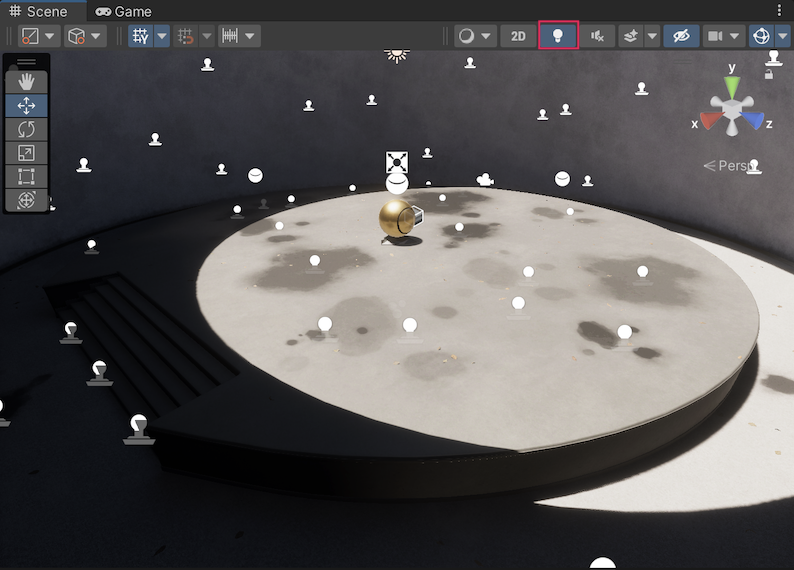 In MatCap mode, the High Definition Render Pipeline (HDRP) replaces the functionality of the Scene view's Lighting button with a material capture (MatCap) view. MatCap mode uses an image that completely captures a Material, including baked-in lighting. When using MatCap mode, HDRP replaces all the Materials and lighting in the Scene with what's in the MatCap.