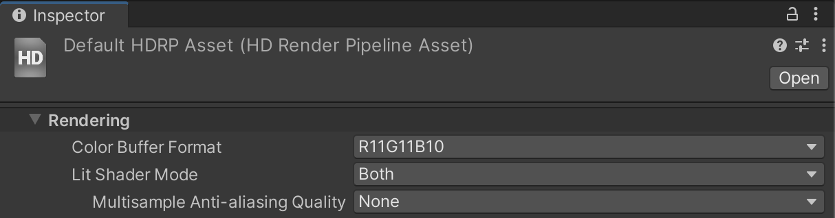 - Select your HDRP Asset in the Project window to view it in the Inspector.