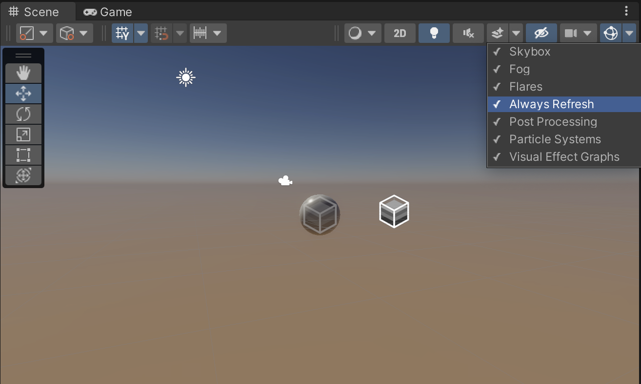 - To refresh the exposure, go to the Scene view and enable Always Refresh.