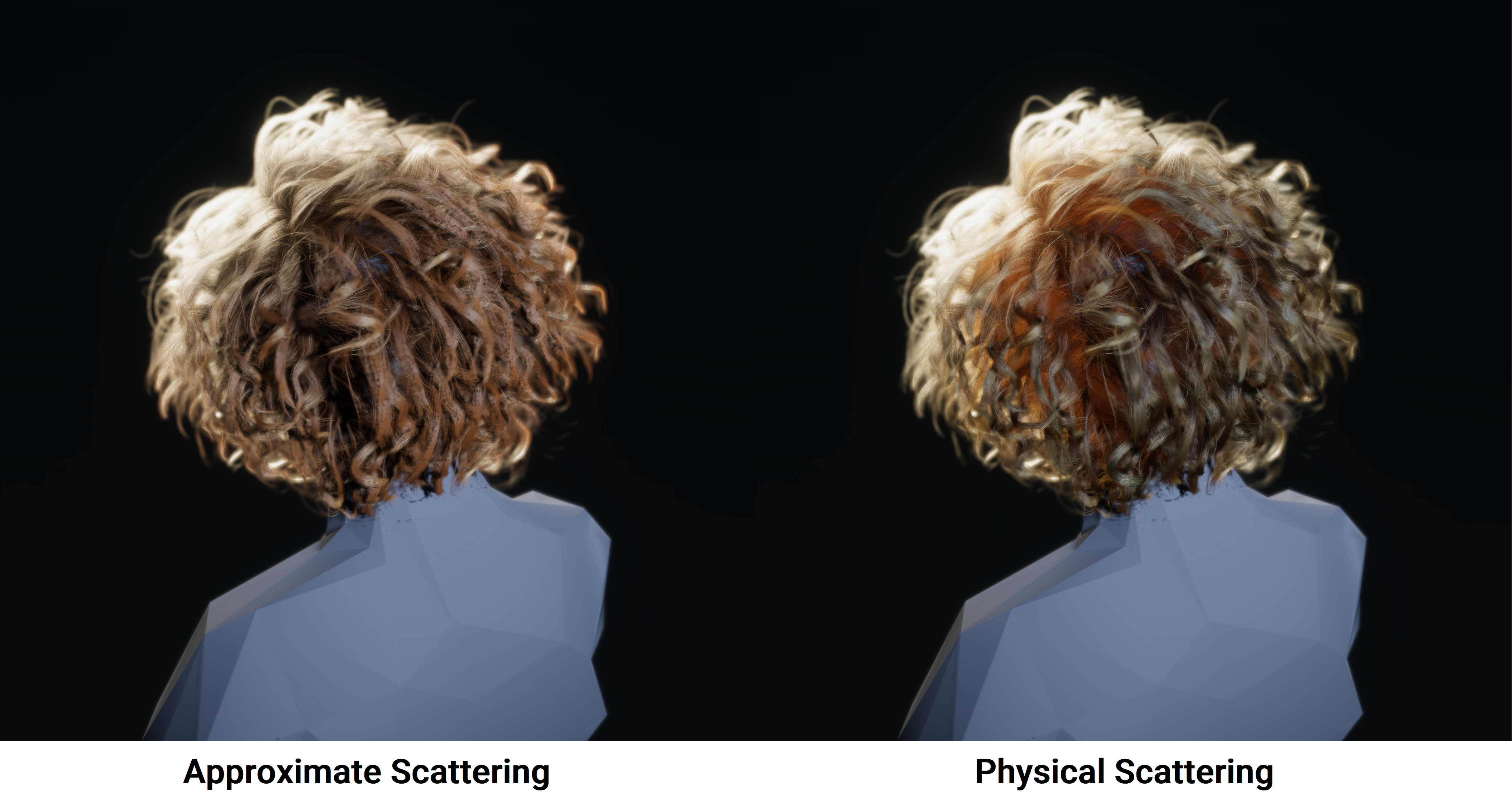 | Physical | Physically simulates light transport through a volume of hair (multiple scattering). This feature is not available for public use yet. |