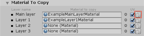 This section contains a list of the Materials that this Layered Material uses as layers. To assign a Material to a layer, either drag and drop a Material into the property field for that layer, or: