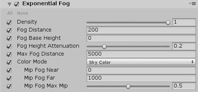 New Scene Settings GameObjects come with some default Volume Overrides, including Exponential Fog. These default Volume Overrides are editable by default. Either leave these settings as default, or override them with your preferred values.