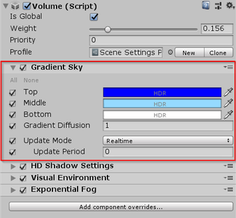 - In the Inspector, navigate to Add Override > Sky and click on Gradient Sky.