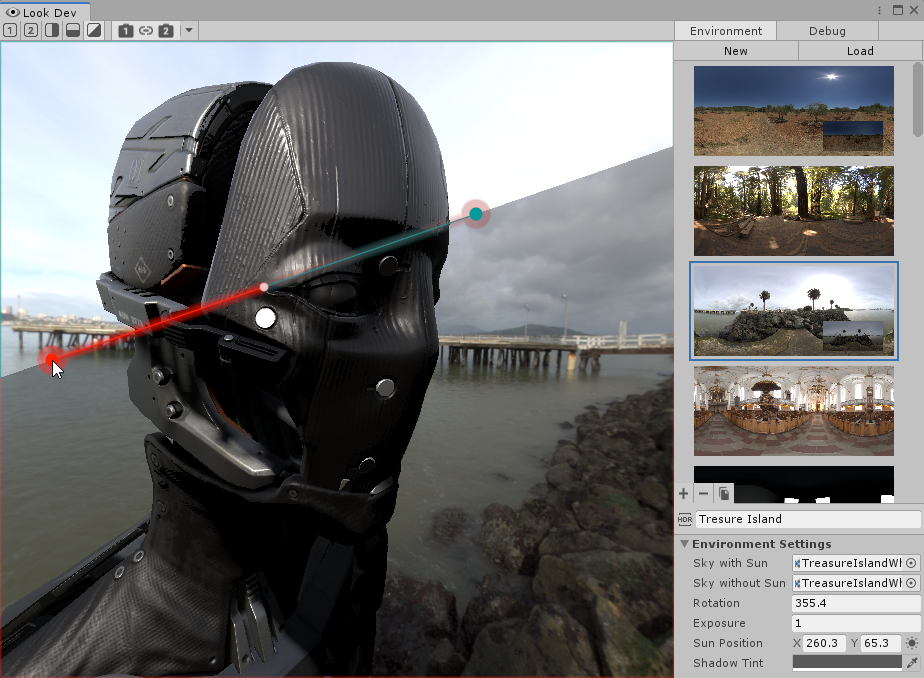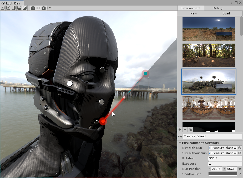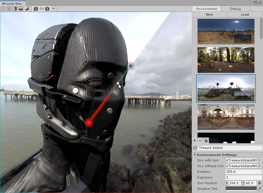 Look Dev is an image-based lighting tool that contains a viewer for you to check and compare Assets to ensure they work well in various lighting conditions. Look Dev uses the Scriptable Render Pipeline, so it can display the Asset in the same way as it looks in your Scene. You can load Assets into Look Dev either as Prefabs or from the Hierarchy window.