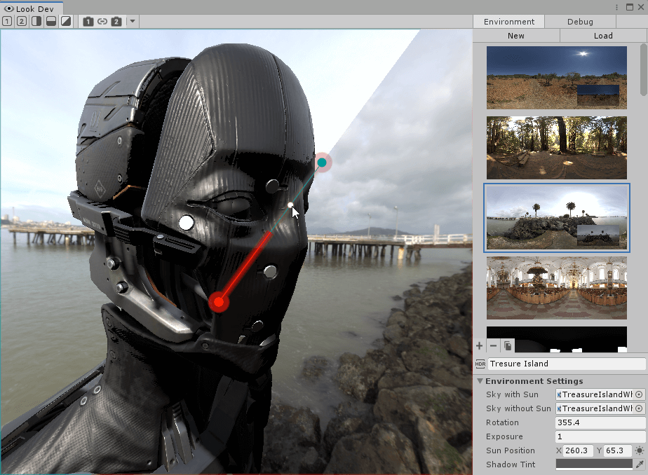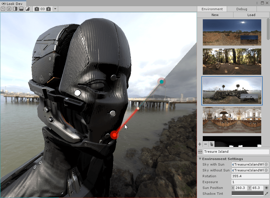 Look Dev is an image-based lighting tool that contains a viewer for you to check and compare Assets to ensure they work well in various lighting conditions. Look Dev uses the Scriptable Render Pipeline, so it can display the Asset in the same way as it looks in your Scene. You can load Assets into Look Dev either as Prefabs or from the Hierarchy window.