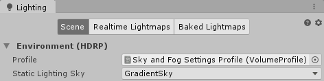 | Static Lighting Sky | The sky to use for the indirect ambient light simulation. The drop-down only contains sky types included and activated in the Profile. For example, if the Profile has an active Gradient Sky Volume override, you can select Gradient Sky from this drop-down. If the Profile includes an active Cloud Layer Volume override, it contributes to indirect ambient light. You can only edit this setting if you assign a Volume Profile to the Profile field and that Profile contains at least one active Sky Volume Override. |