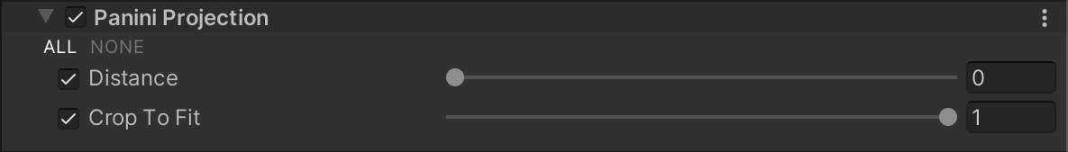 Panini Projection uses the Volume framework, so to enable and modify Panini Projection properties, you must add a Panini Projection override to a Volume in your scene. To add Panini Projection to a Volume: