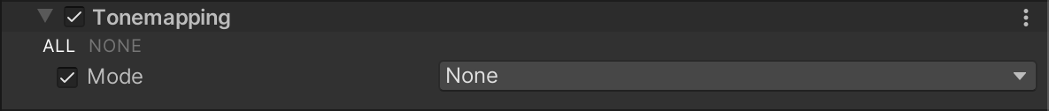 - In the Inspector, navigate to Add Override > Post-processing, and click on Tonemapping. The Universal Render Pipeline applies Tonemapping to any Camera this Volume affects.