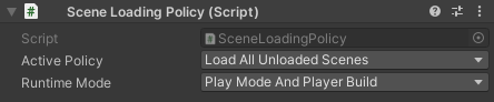 | Active Policy | The Scene loading policy to apply in the targeted Runtime Mode to any unloaded Scene of the current Master Sequence. | |