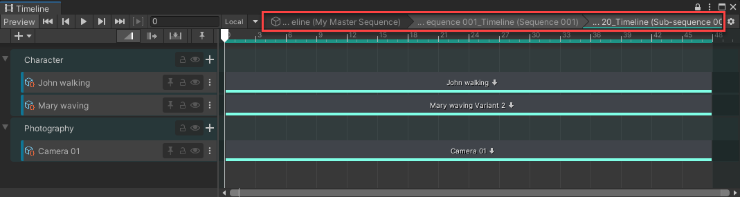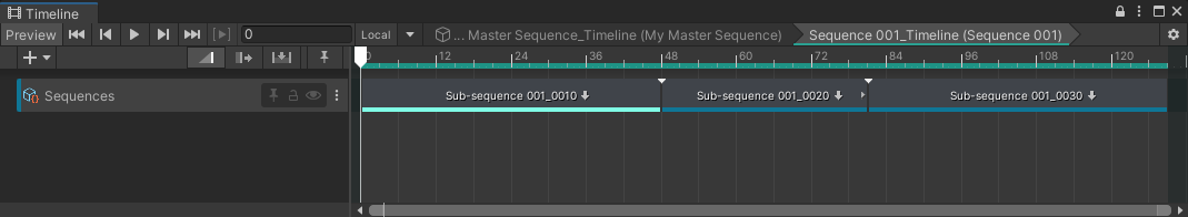Note: If you open a Sequence in Prefab Mode, you can only navigate through the structure of this Sequence. See how to manage Sequences as Prefabs.