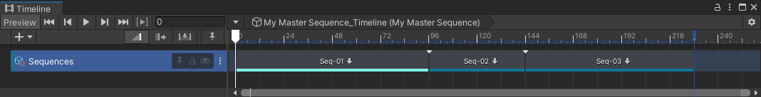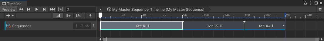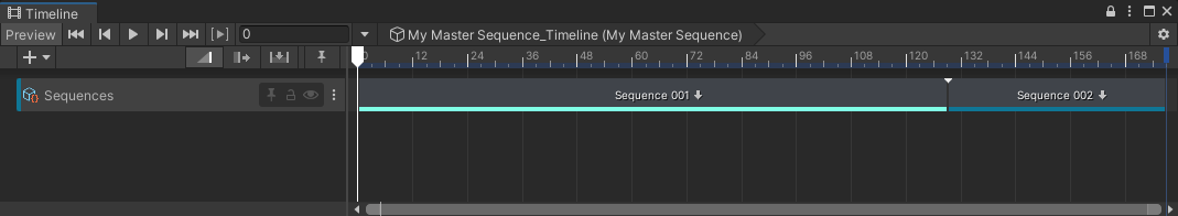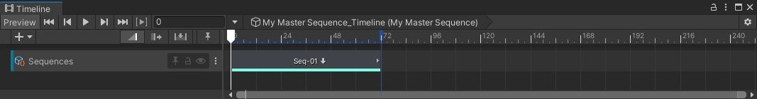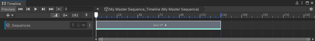 Note: You can manually create a Sequence Asset track through the Timeline Add Track menu: select the + (plus) button or right-click in an empty area of the track list, and then select Sequencing > Sequence Asset Track. However, such a track would require some more advanced configuration to become usable in the context of Sequences.