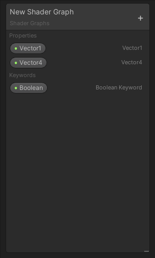 An area that contains all of the shader's properties in a single, collected view. Use the Blackboard to add, remove, rename, and reorder properties. Refer to Blackboard for more information.