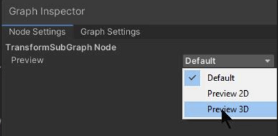 That decision is determined by either the type of the node you are previewing, the Sub Graph setting (if this node is in a Sub Graph) or other upstream nodes. To override the inheritance mode, select Preview 2D or Preview 3D.