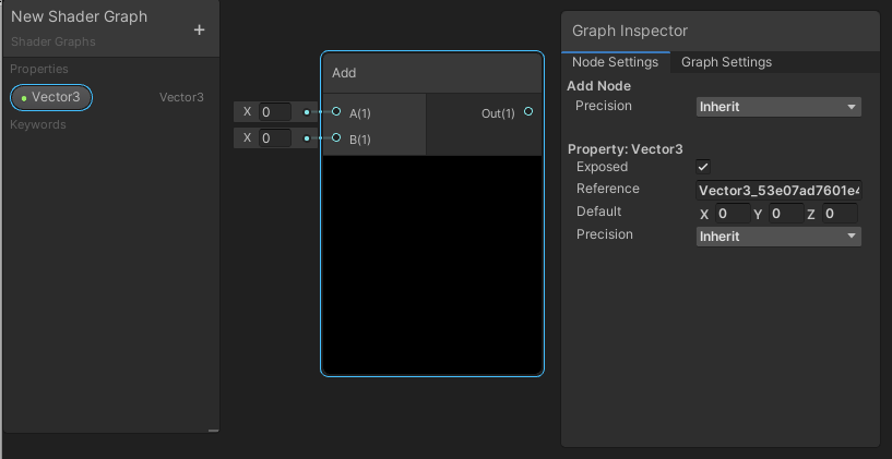 An area that contains all of the shader's properties in a single, collected view. Use the Blackboard to add, remove, rename, and reorder properties. Refer to Blackboard for more information.