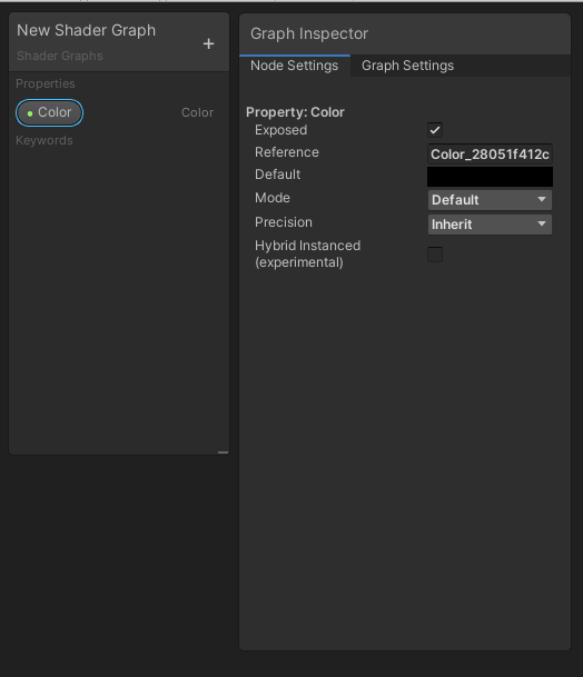 Hybrid Instanced | An experimental feature that enables this property to be instanced when using the Hybrid DOTS renderer. |