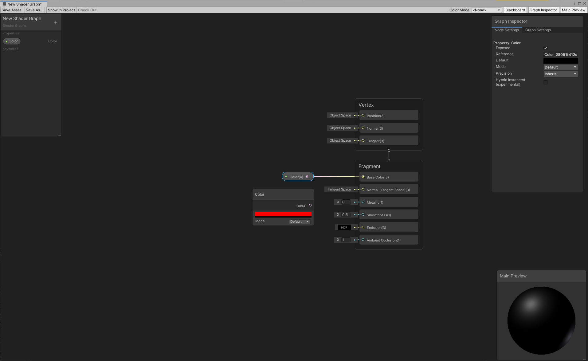 Save your graph, and return to the Material's Inspector. The property now appears in the Inspector. Any changes you make to the property in the Inspector affects all objects that use this Material.