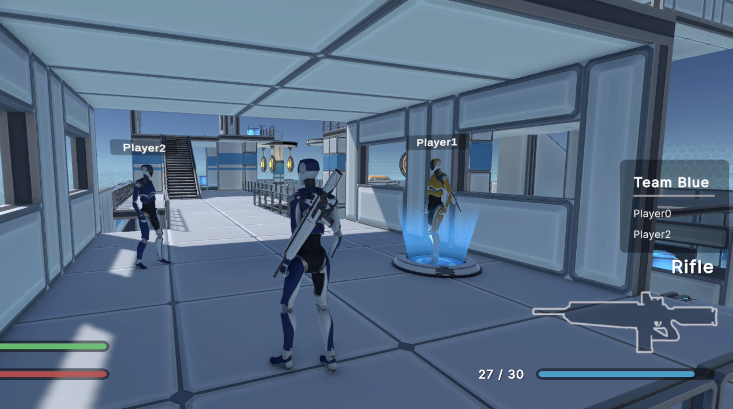 This tutorial shows how to implement a team-based multiplayer system where players are automatically assigned to teams, colored by team, and protected from friendly fire.