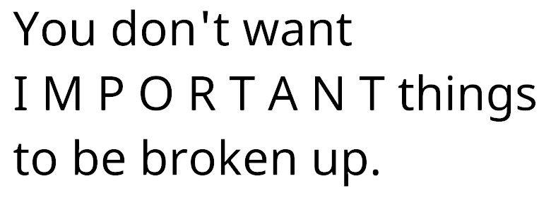 You don't want <nobr>I M P O R T A N T</nobr> things to be broken up.