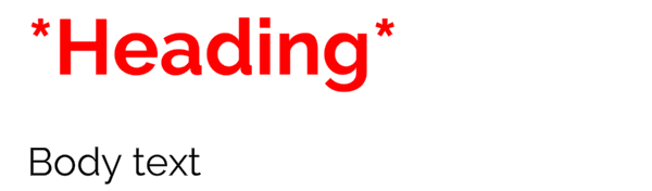 For example, you might want headings in your text to be big, red, bold, with an asterisk to either side and a line break at the end.