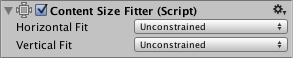The Content Size Fitter functions as a layout controller that controls the size of its own layout element. The simplest way to see the auto layout system in action is to add a Content Size Fitter component to a Game Object with a Text component.