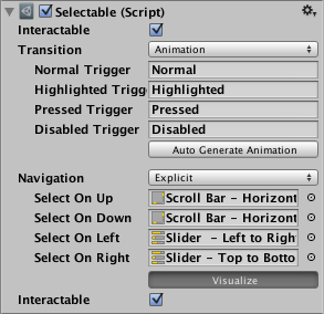 | Navigation | The Navigation options refers to how the navigation of UI elements in play mode will be controlled. |
