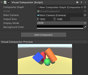 Visual Compositor is a GameObject component for executing a node-based graph defined in a Compositor Graph asset to produce the final render output.