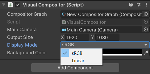 The final output shown in the Game view is shown in sRGB by default, but can be changed to linear as necessary.