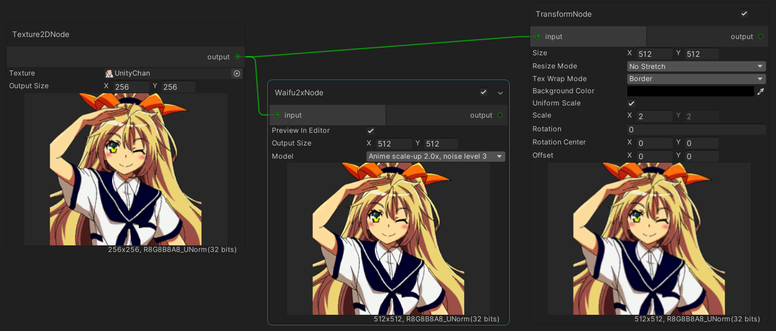 Upscale an image while reducing noise using Waifu2x with Unity Barracuda neural network inference library.