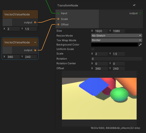 This node applies 2D transforms to the input image, allowing for scrolling and zooming effect.