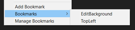 Right clicking in an empty area will open a context menu with a bookmark section containing the following items: