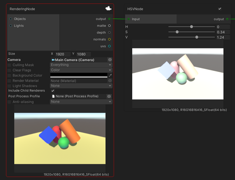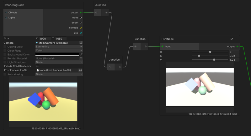 The Visual Compositor window shows the Compositor Graph of the selected GameObject, as indicated by the GameObject name located at the top.