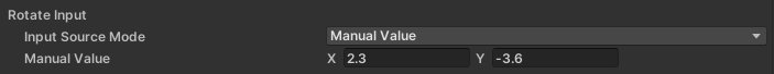 The properties that you can set for a manual value depend on the action type of the input. For example, a button-type input, like Select Input, has both a binary, on-or-off value and a numerical value with a range of 0 to 1, because some controller buttons, like a trigger, support both a value for on and off and a value indicating how far it is depressed. In contrast, a UI Scroll Input has a 2D vector setting to correspond with the 2-axis thumbstick input needed to scroll vertically and horizontally.