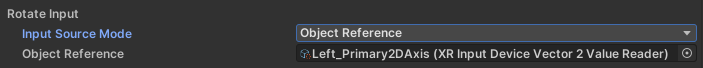 | UI Scroll, Translate, Rotate, Directional, Scale Over Time, Teleport Mode, Turn, Snap Turn, Move | Value (2D vector) | XRInputValueReader<Vector2> |